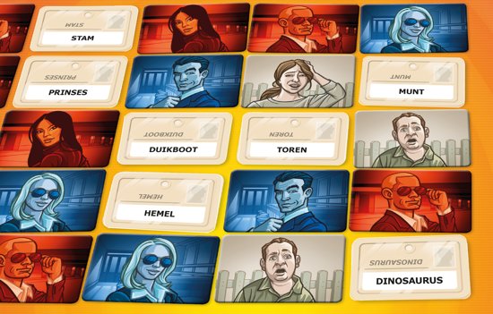 Twee geheime diensten kennen de geheime identiteit van in totaal 25 spionnen. Hun teamgenoten kennen echter alleen de codenamen. Hoe leg je dan alsnog contact met de spionnen? Elk hoofd van de twee rivaliserende geheime diensten mag één woord noemen. Door andere kaartjes met dat woord te associeren kunnen spelers zoveel mogelijk punten scoren. Maar pas op voor de huurmoordenaar! Er zijn 400 woorden, waarvan je er dus telkens maar 25 gebruikt, waardoor je Codenames vaak opnieuw kunt spelen. Lees meer