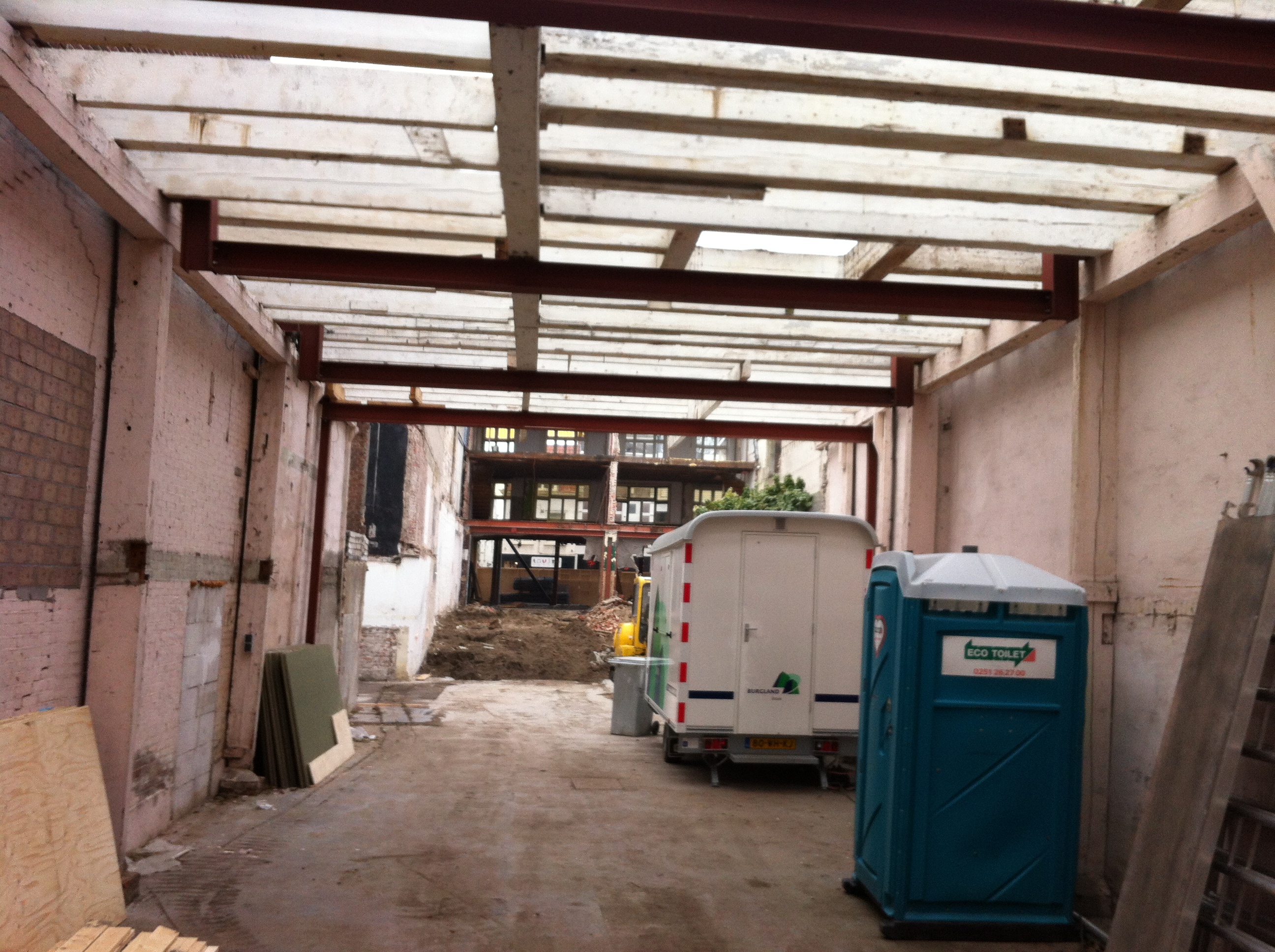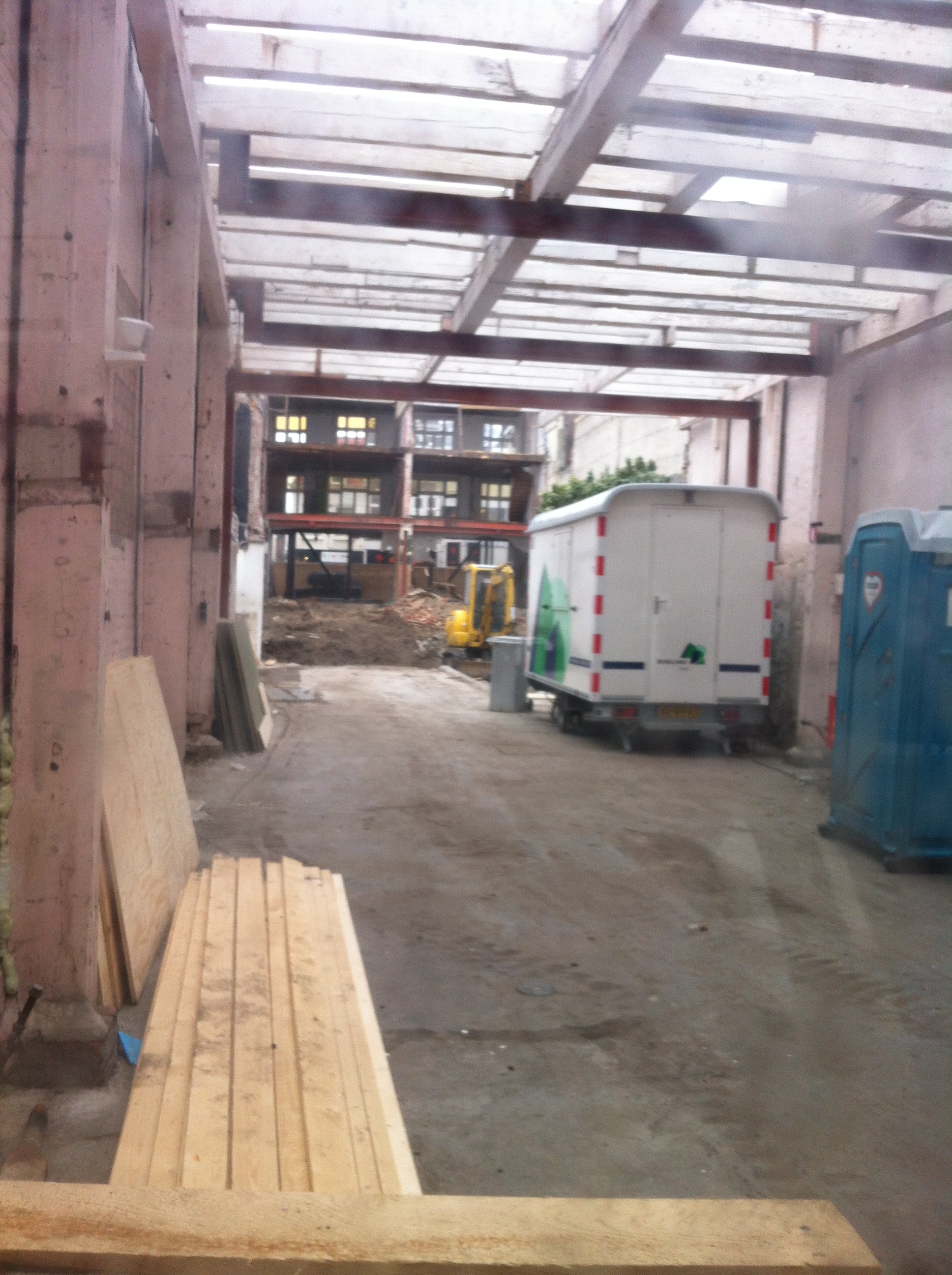 Het pand lijkt vrij klein en de voorkant is niet zo boeiend om te zien. Een aardige bouwvakker die aan het werk was bij een naastgelegen pand was echter zo vriendelijk om ons door zijn bouwplaats naar de achterkant van de potentiële Apple Store te loodsen. Aan de achterkant is pas goed te zien hoe enorm diep het pand vooral is.