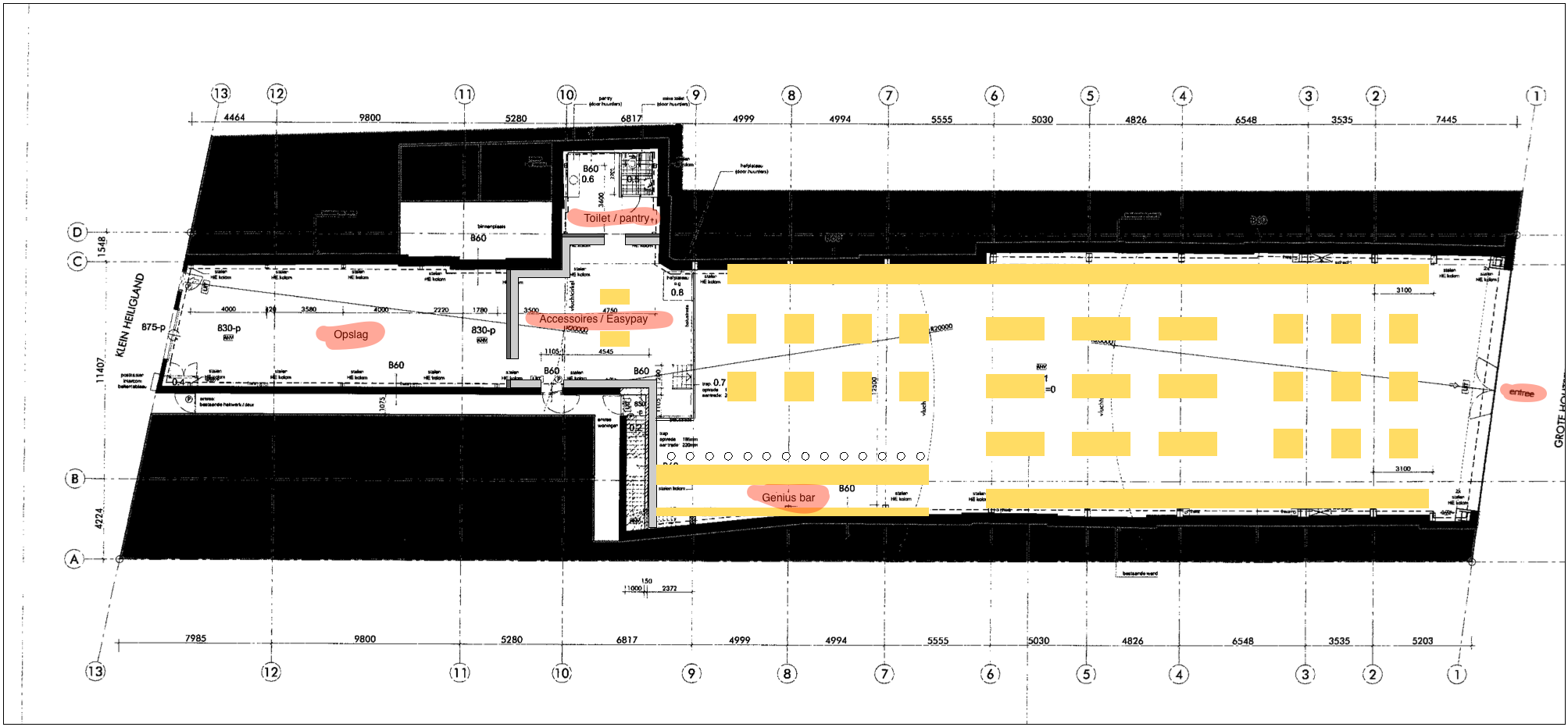Wij hebben de hand weten te leggen op de bouwtekeningen van het pand waar de Apple Store in Haarlem in zal komen. OMT’s redacteur Jan David is in het dagelijks leven architect en heeft geprobeerd op basis van het interieur van reeds bestaande Apple Stores invulling aan bouwtekeningen te geven. Hieronder zie je een indicatieve schets van de indeling. (Klik op de afbeelding om alle details in hoge resolutie te zien)