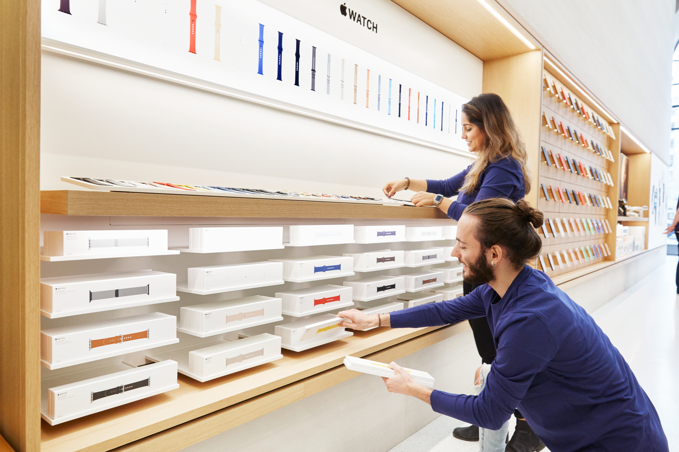 Tijdens de opening van de winkel vertelde Apple’s retail-topvrouw Angela Ahrendts dat het een bewuste keuze is: “We willen klanten laten voelen hoe het is om apparaat dagelijks bij te hebben. Het is zo ook mogelijk om door de winkel naar een rek met hoesjes te lopen en verschillende kleuren en soorten te proberen.”
