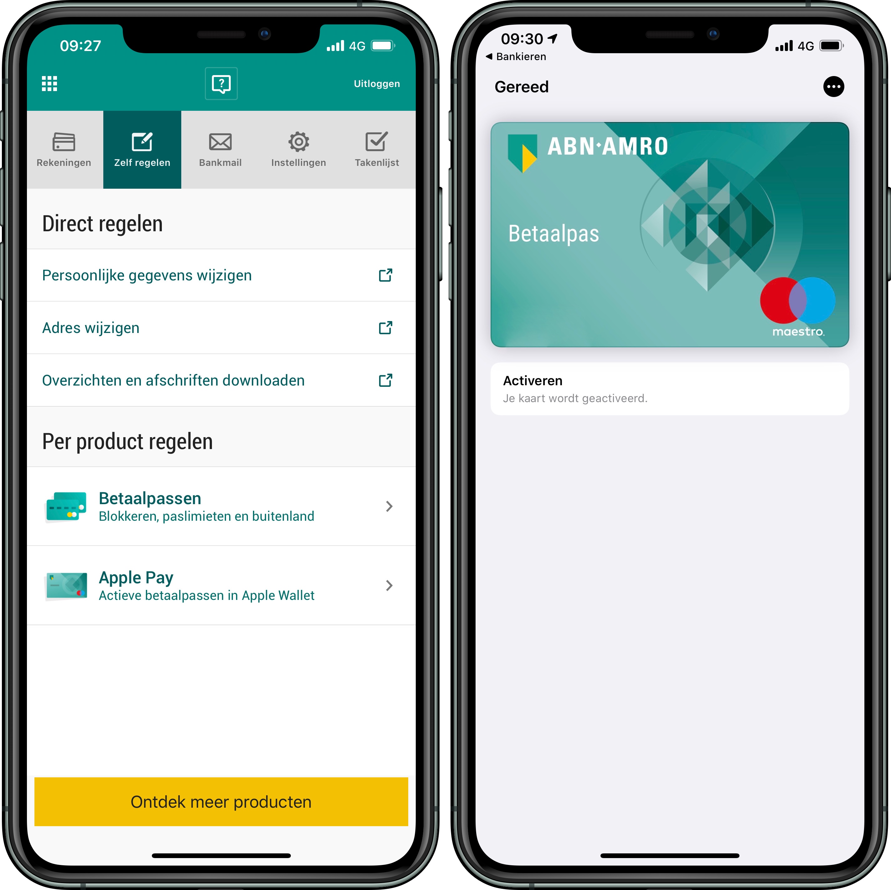 Het activeren gaat via de app van de bank zelf. Je logt daar eerst in en gaat vervolgens naar het tabblad ‘Zelf regelen’. Als het goed is, staat daar een knop met het label “Apple Pay”. Verschijnt deze niet? Zorg dan dat je de laatste versie van de app hebt geïnstalleerd, of start je iPhone opnieuw op.
