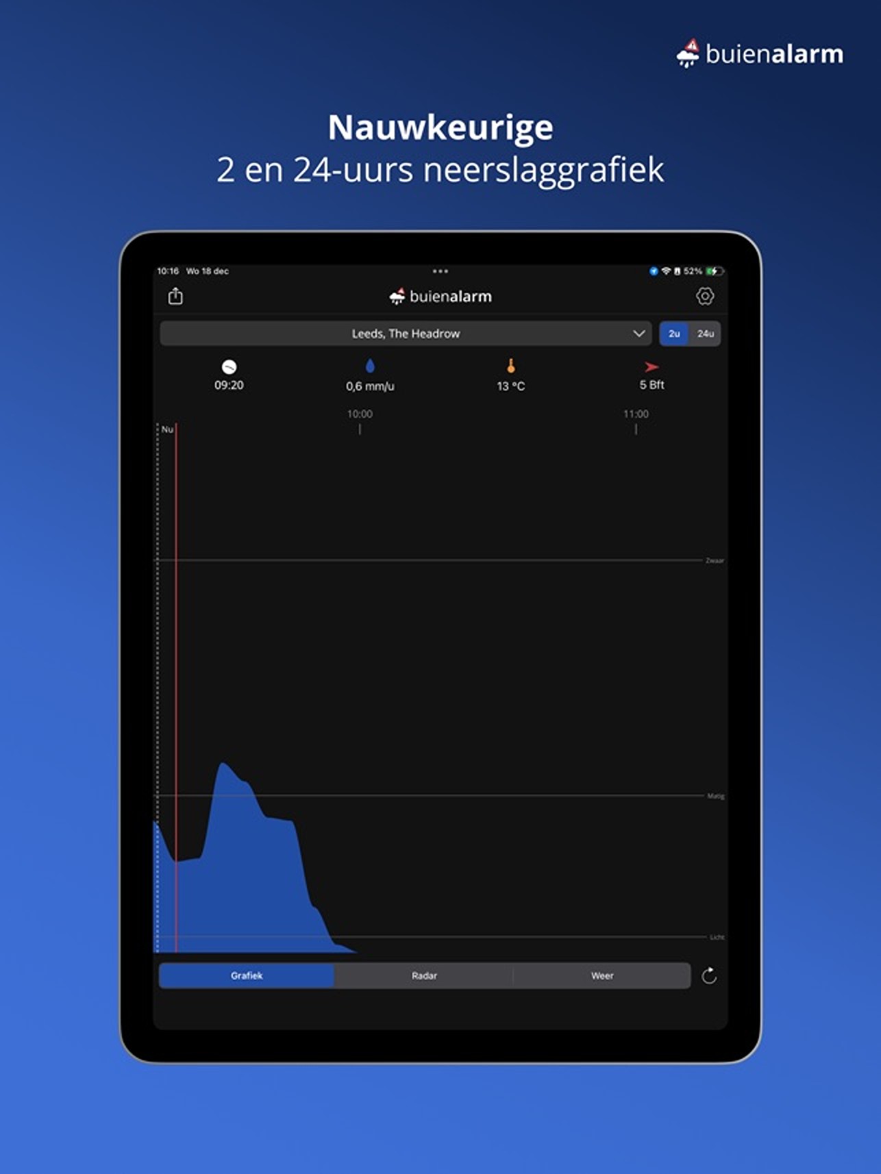 Buienradar is zonder twijfel een van de populairste weer-apps in Nederland. Dankzij de gedetailleerde radarbeelden zie je in real-time waar en wanneer je regen kunt verwachten. Zo weet je precies wanneer je naar buiten kunt en wanneer je nog even geduld moet hebben.