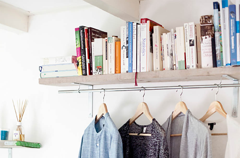 Als je kledingkast uitpuilt en je niks meer overzichtelijk op kunt bergen, kun je je heil zoeken bij een wandplankje. Ikea ideas demonstreert hoe je gewoon een FINTORP stang kunt vastmaken aan de onderkant van het plankje en op deze manier extra plek creëert om je shirts, jassen etc overzichtelijk op te hangen.