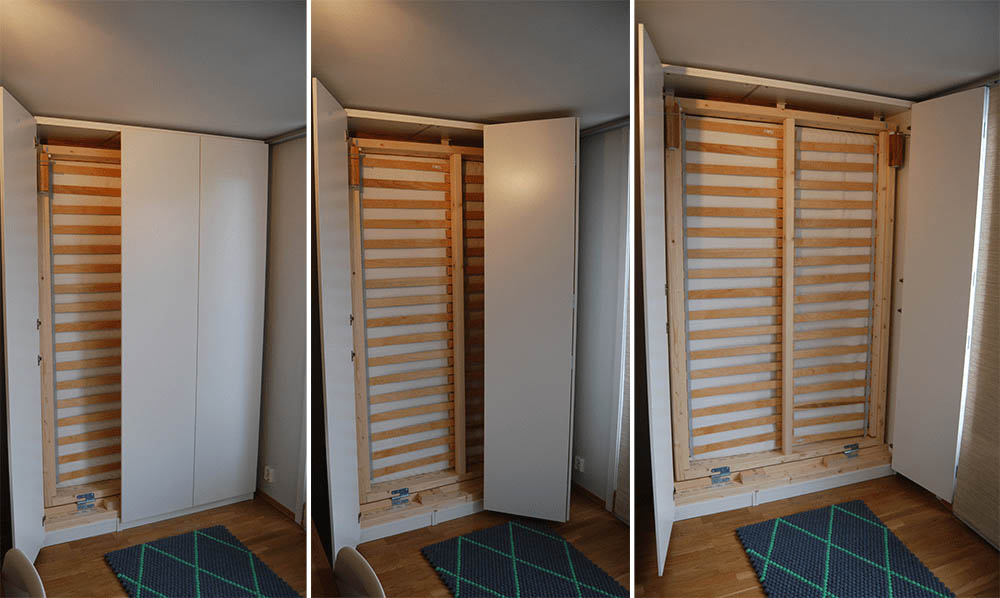 Als je echt ruimte wilt besparen, kun je er ook voor zorgen dat je bed helemaal verdwijnt met deze Ikea hack van ikeahackers. Want wat neemt er minder ruimte in beslag dan je bed? Geen bed natuurlijk. Met deze hack leer je hoe je je bed in een kast kunt laten inklappen, zodat er meteen meer ruimte ontstaat voor je bezoek of voor je workout. ‘S avonds doe je gewoon de kast weer open en komt je bed tevoorschijn om in te ploffen.
