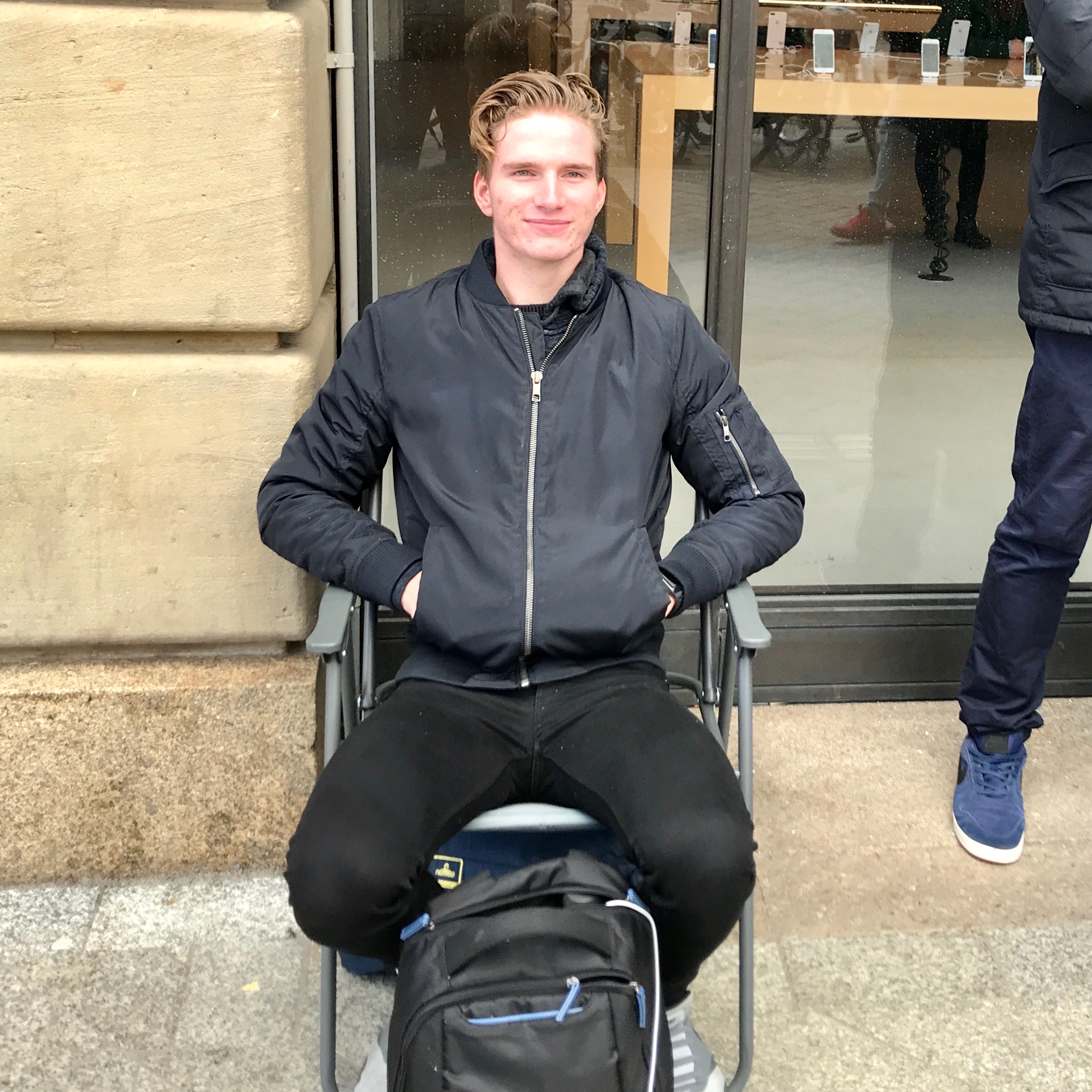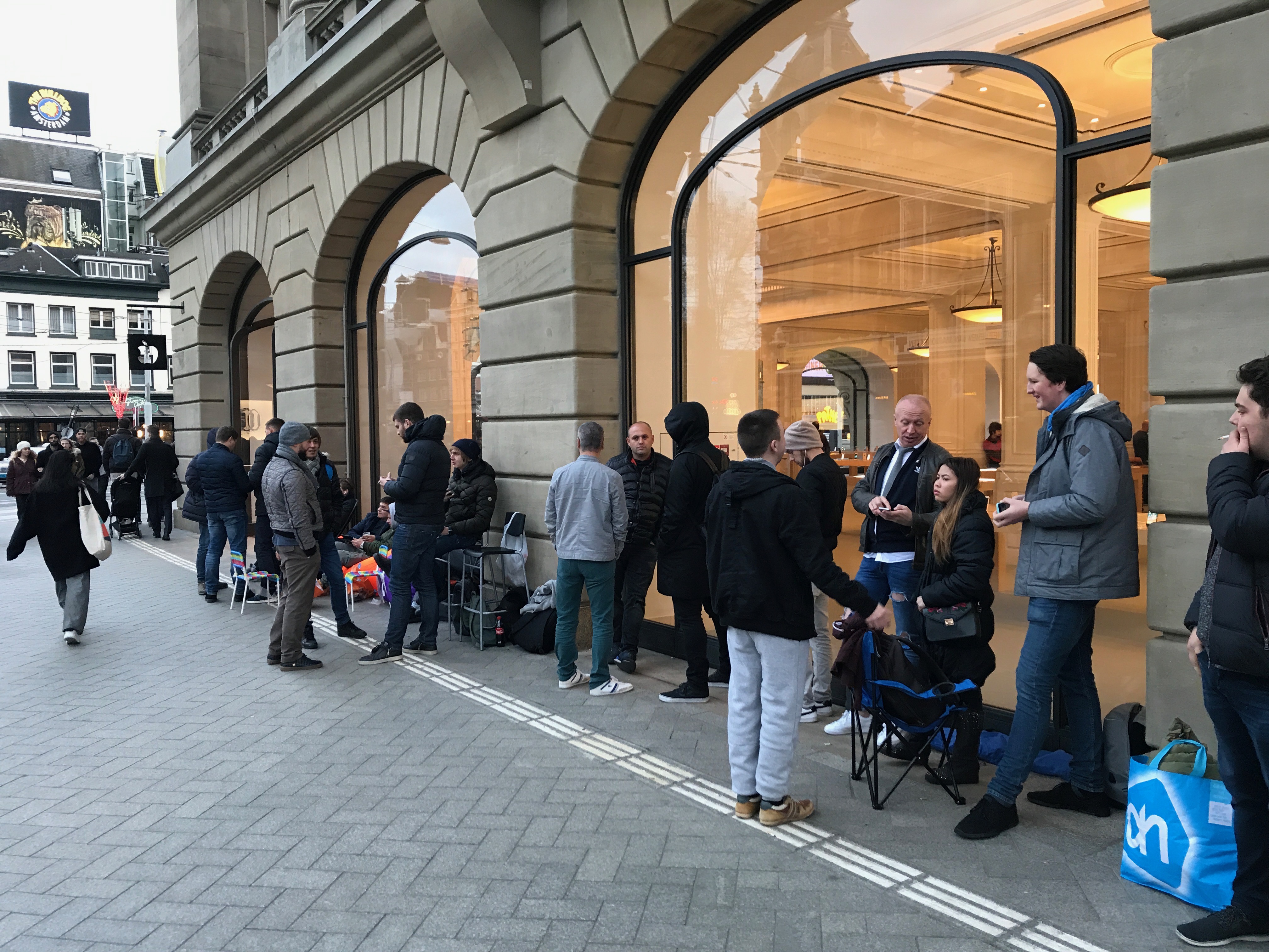 In Amsterdam bivakkeert de 18-jarige Rico als eerste voor de Apple Store. Hij reisde vanuit Enkhuizen naar Amsterdam om morgen zeker te zijn van een iPhone X. Om 10:30 uur klapte hij zijn stoeltje uit en morgen om 08:00 uur kan hij onder luid gejuich als eerste een nieuwe iPhone bemachtigen. De rij zal snel groeien, ook bij de Apple Stores in Den Haag en Haarlem. Rond 17:00 uur stonden er 25 mensen in Amsterdam te wachten.