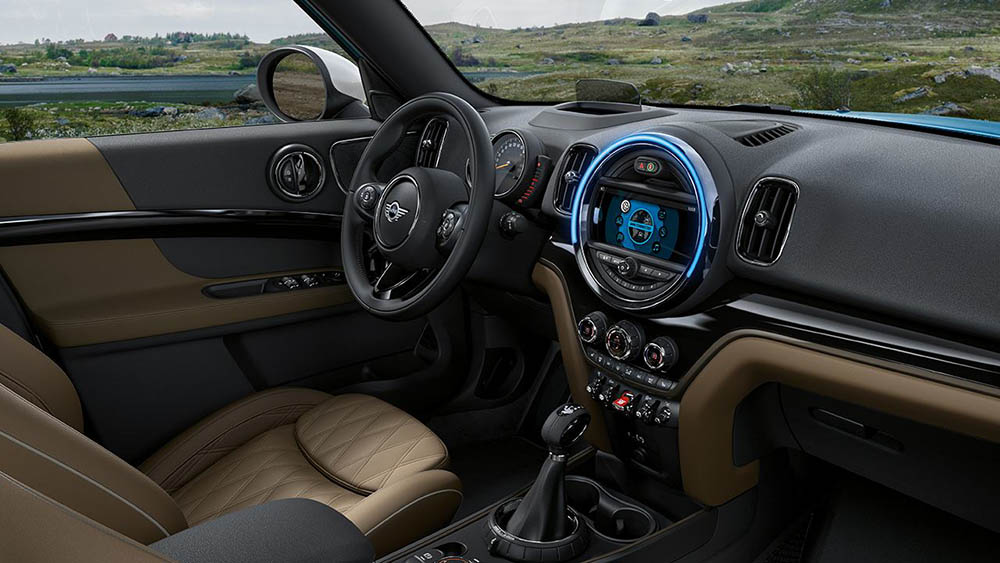 Hoewel de Countryman zijn mini naam eer aan doet, is er toch behoorlijk wat ruimte binnenin om comfortabel te kunnen zitten. Uiteraard helpen de ergonomische en fijn zittende stoelen mee, maar vooral de slimme indeling van het interieur zorgt ervoor dat zelfs wat langere passagiers zich niet opgepakt voelen. Daarnaast is binnenin ook aan de kinderen gedacht en zijn er verschillende punten gemaakt waar je een kinderzitje aan vast zou kunnen maken.