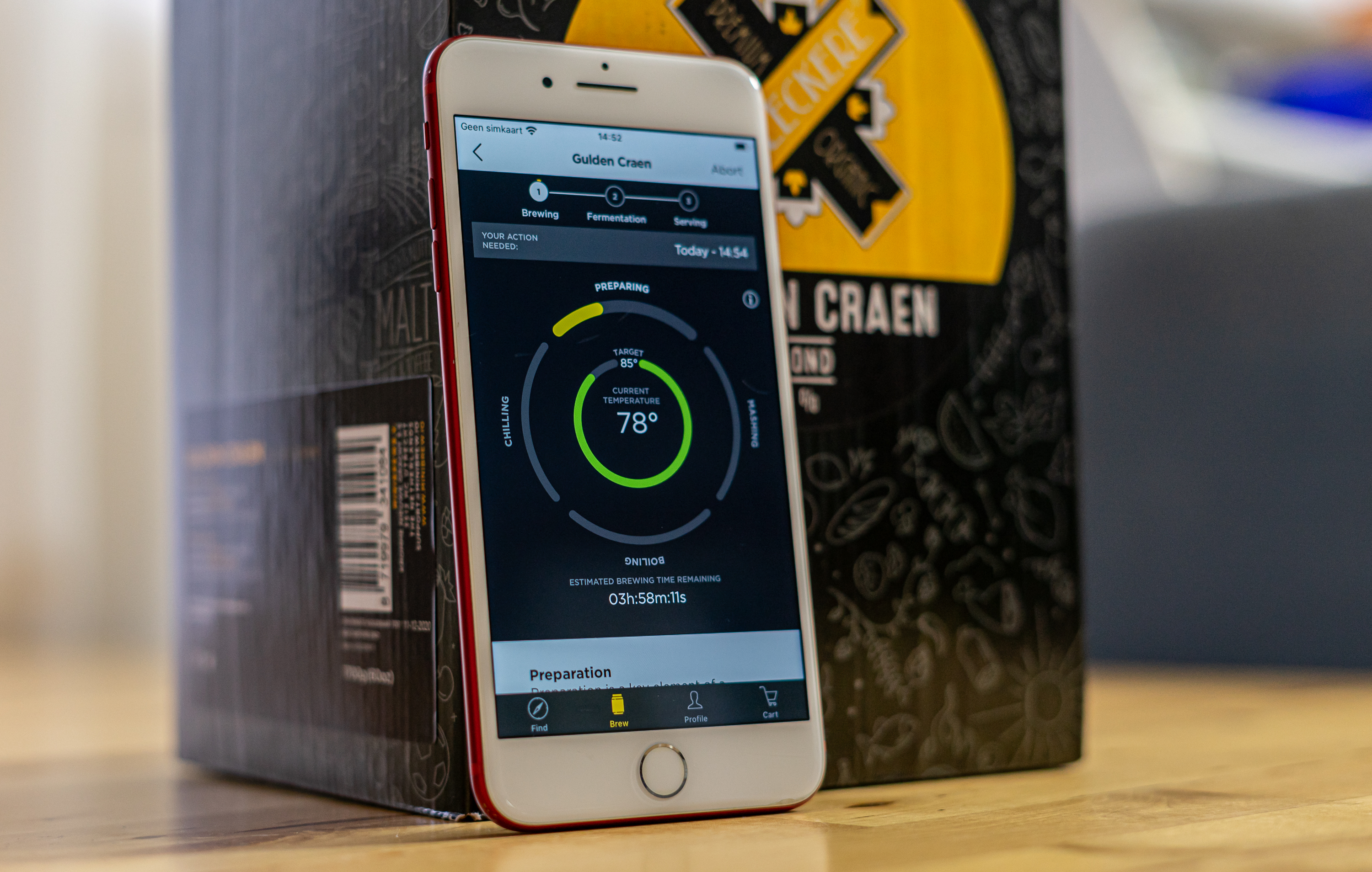 Dat laatste is wel een nadeel: Androidgebruikers zoals ik kunnen voorlopig niet met de MiniBrew aan de slag. Ik kon voor deze review eenvoudig een iPhone regelen, maar dat is voor de meeste mensen natuurlijk wat lastiger. MiniBrew zegt een Android-app in de planning te hebben om dat probleem op te lossen, maar wanneer die komt is nog niet duidelijk. Verder moet je wel bereid zijn om €1199 voor het apparaat te betalen, €389 voor een eventueel extra fust en eventueel €89 per jaar voor het brouwportaal waar je je eigen recepten kunt maken. Misschien geen gekke prijs als je bedenkt wat de MiniBrew kan, maar wel een flinke smak geld. Wil je veel experimenteren met je eigen bier, dan kun je het beste voor €1999 de MiniBrew Craft Pro-set kopen; die komt met drie fusten en een jaar toegang tot het brouwportaal.