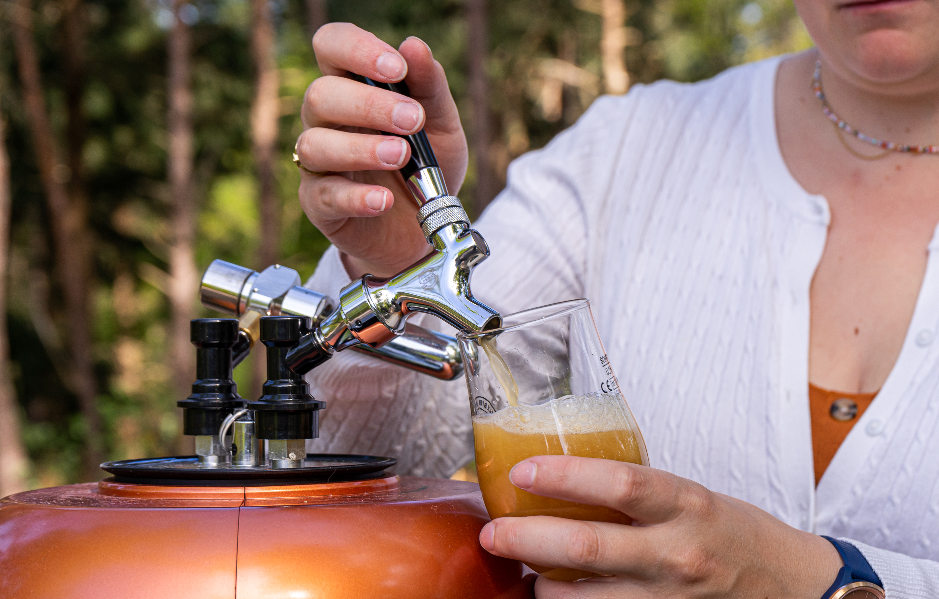 Je tapt je bier direct uit het fust met een klein tapje dat je eenvoudig kan af- en aankoppelen. Je moet hem na elke drinksessie even schoonmaken, maar dat is zo gepiept. De tapdruk regel je via een wieltje aan het CO2-patroon. Het was even zoeken hoeveel CO2 er precies in het bier moest en hoe hoog de tapdruk precies moest, maar met een beetje zoeken en begeleiding van de app kom je daar wel uit. Ook handig: omdat het fust ingebouwde temperatuurregeling heeft is je bier altijd direct op de goede temperatuur.