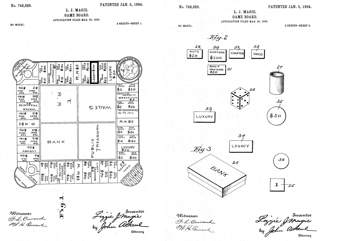 Op 5 januari 1904 kreeg Magie patent op The landlord’s game. Haar bordspel belandde in bepaalde linkse kringen en op universiteiten. Haar spel werd vaak aangepast, zodat de eigendommen beschikbaar in het spel, pasten in de omgeving van de universiteit waar het spel te vinden was.