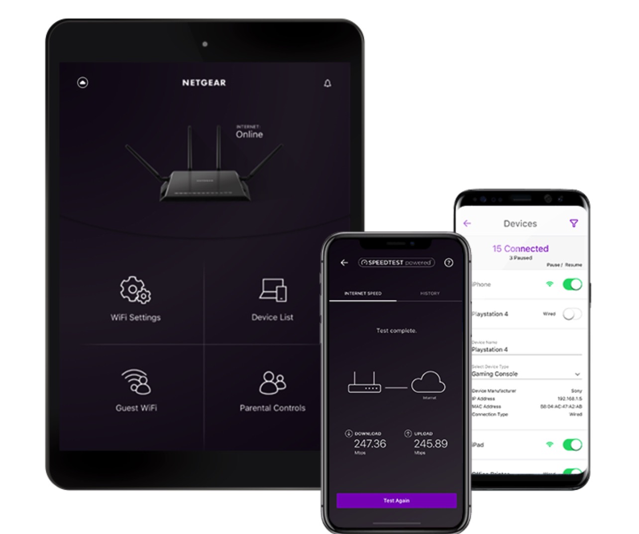 Het opzetten van een router was vroeger nogal lastig. Vandaag de dag gaat het gelukkig wat simpeler met handige software. Op dat gebied stelt de Netgear Nighthawk AX8 WiFi 6 Router niet teleur. De router kan makkelijk via de app of de webpagina ingesteld worden en vervolgens kun je allemaal verschillende functionaliteiten instellen. Denk daarbij aan het blokkeren van bepaalde websites als je niet wilt dat je kinderen daar op komen of zelfs het blokkeren van bepaalde devices in huis. Ook kun je snel zien hoe alles met de snelheid gaat en een gast-netwerk aanmaken.