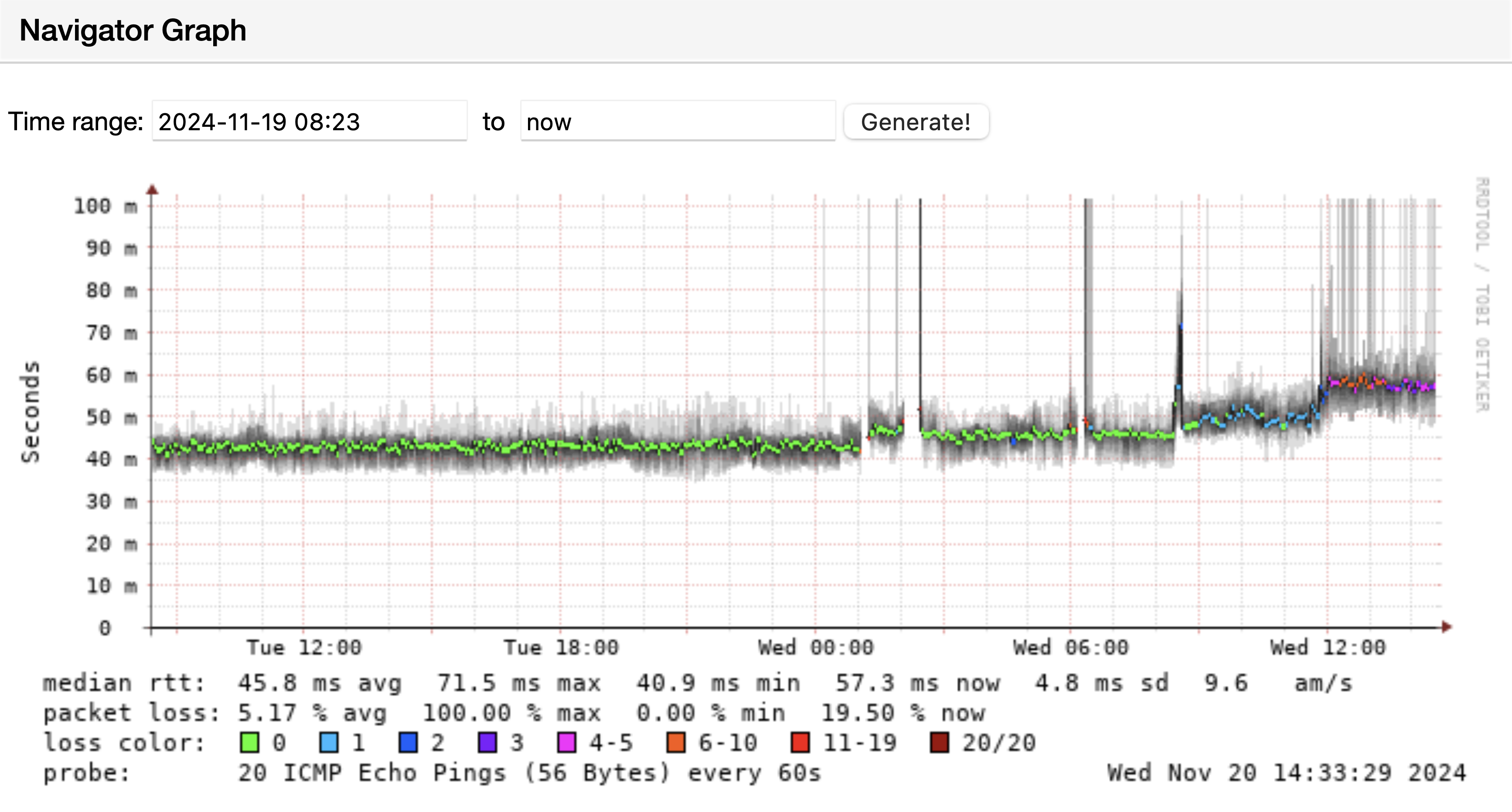 Vanochtend leek het netwerk weer stabieler, maar sinds 12.00 uur is internet aanzienlijk trager. Dit komt door een hoge packet loss waarbij de pakketjes met data die over het mobiele netwerk gaan, voor de helft verloren gaan.
