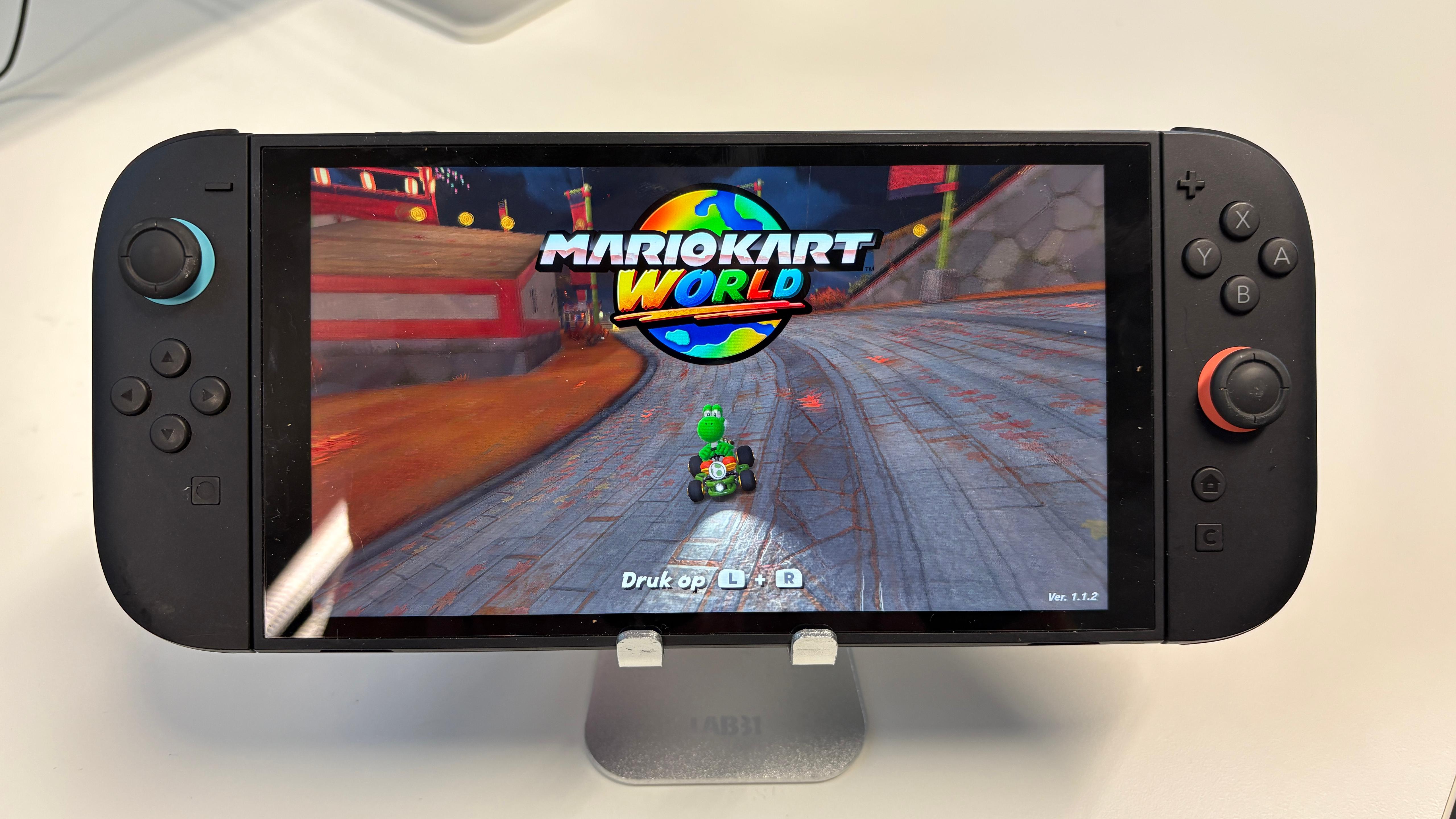 En die hardware is opvallend goed te noemen. Hoewel Nintendo kiest voor een LCD-scherm in plaats van het innovatievere OLED, ziet alles er echt goed uit. Hoewel ik eerst sceptisch over de keuze was, zien games er echt geweldig uit. De kleuren spatten daadwerkelijk van het scherm als je bijvoorbeeld een Mario Kart speelt. Daarbij is ook de refreshrate van het scherm prima te noemen. Games zien er echt zeer vloeiend uit.