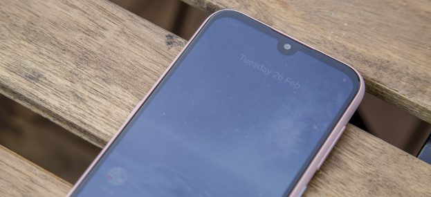 Dat geldt ook voor het ontwerp: een plastic frame zit gesandwicht tussen een glazen voor- en achterkant. Opvallend is dat het toestel een druppelnotch heeft; een vrij modern designelement dat we nog niet veel zien in deze klasse. Die zorgt ervoor dat het 5,7-inch scherm in een vrij compacte behuizing past.