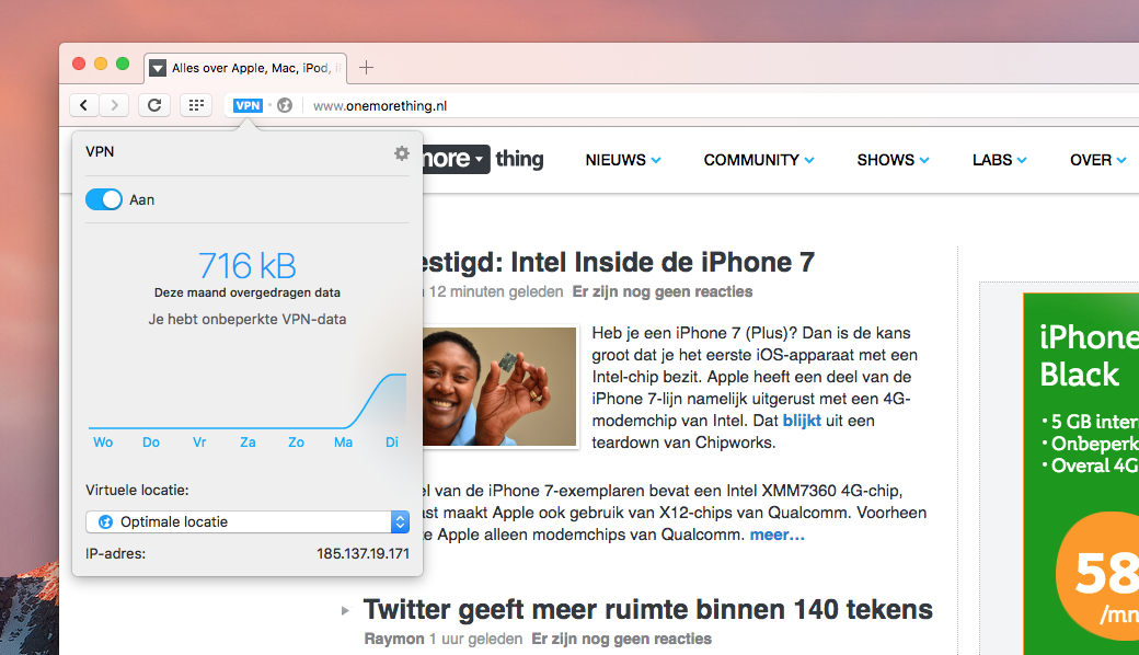 Wanneer de VPN-verbinding is geactiveerd, maakt de browser een veilige verbinding met een van de VPN-servers. Vanaf dat moment wordt je oorspronkelijke IP-adres vervangen door een virtueel adres in het land naar keuze. Opera zegt dat iedere gebruiker recht heeft op privacy tijdens het surfen en de VPN daarom gratis en onbeperkt beschikbaar te stellen. Echter, moet je er rekening mee houden dat 100 procent anonimiteit niet gegarandeerd is. Ook werkt de VPN-verbinding alleen binnen Opera zelf en niet binnen andere OS X-applicaties.