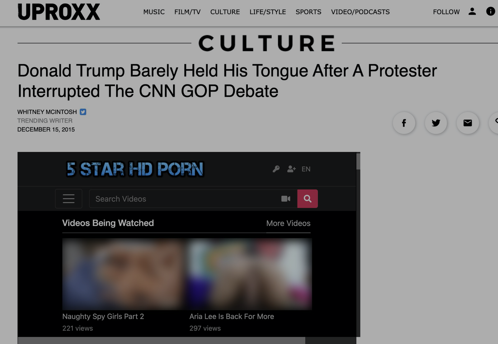 Internationale nieuwssites zoals Washington Post, New York Magazine en Huffington Post hebben enige tijd hardcore porno bij nieuwsartikelen getoond. Dit heeft Vice ontdekt. Tussen nieuws stond materiaal dat op zijn zachts gezegd not safe for work is.