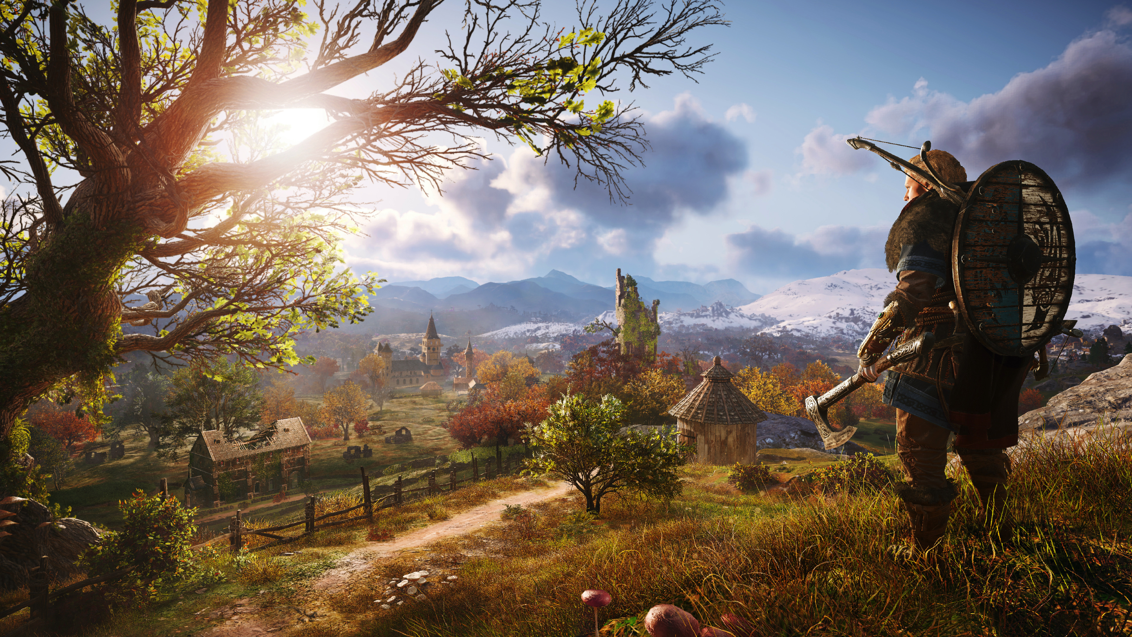 De laatste twee games in de Assassin’s Creed-reeks nam je mee naar zonnige oorden van het Oude Egypte en Griekenland. Met Assassin’s Creed Valhalla komen we in een setting van de Middeleeuwen, waarbij je in Scandinavische gebieden en Engeland los kunt gaan. Je komt terecht in dorpjes met kerkjes en kleine huisjes. Dat is echt even iets anders. Ook de natuur waar je door heen loopt is een stuk wilder en begroeider. Daardoor voelt het echt als een setting die we niet eerder hebben gehad in de game.