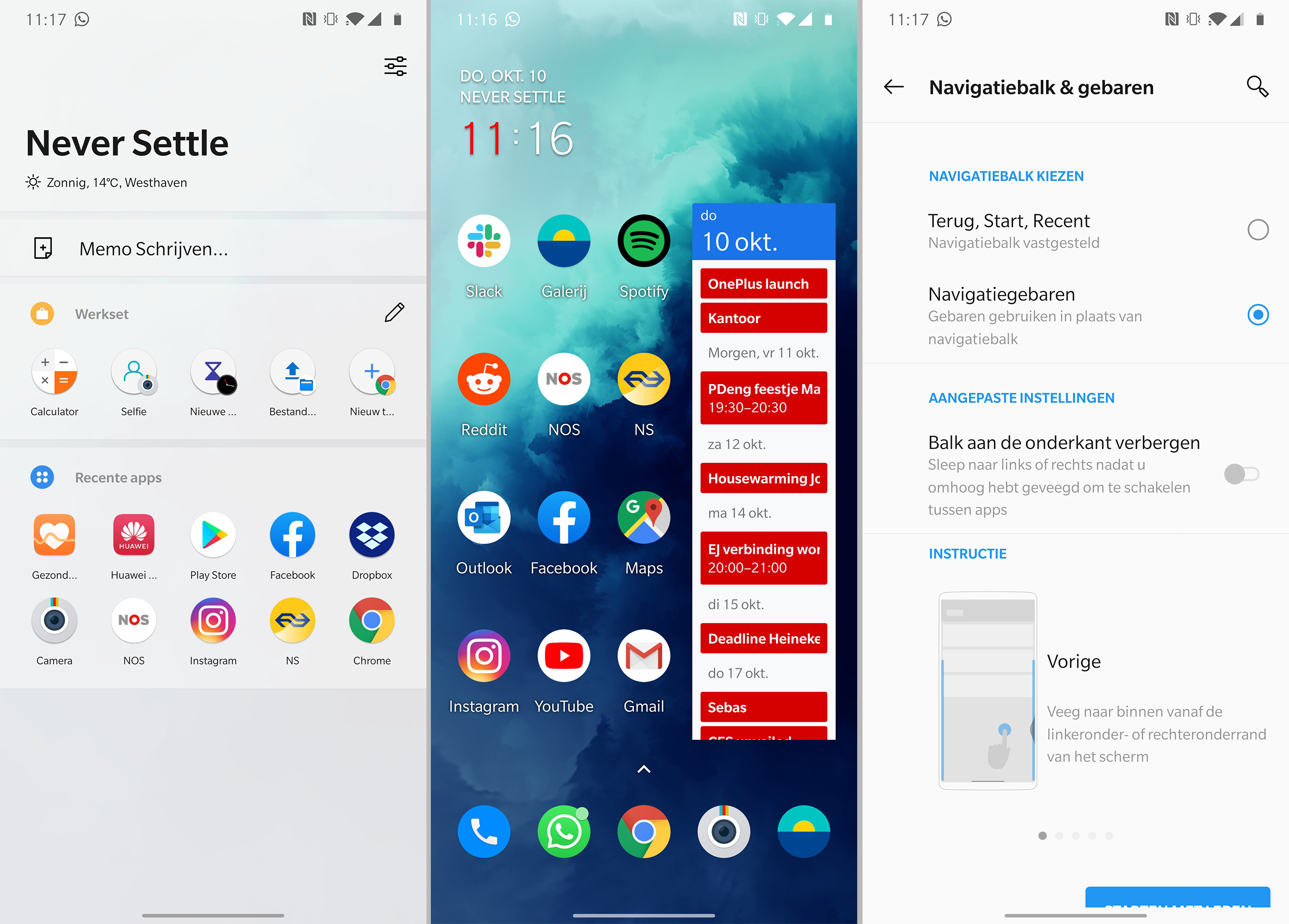 Misschien wel de meest in het oog springende verandering is de nieuwe gebarennavigatie. Dat had OnePlus altijd erg goed voor elkaar. Nu neemt OnePlus de nieuwe gebaren van Google over, en dat maakt het niet beter. Vooral het gebaar om terug te gaan – daarvoor moet je nu het scherm in vegen vanaf de zijkant – is onhandig. Die interfereert namelijk in veel apps met het openen van het hamburger menu. Niet echt handig.