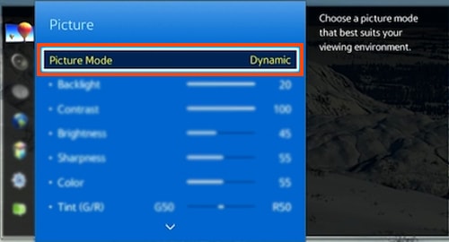 Ieder merk smart-tv heeft zijn eigen benaming voor deze instelling, maar over het algemeen heeft deze setting altijd ‘dynamic’ in de naam. Deze ‘dynamic picture’ instelling is wat standaard aan staat. Fabrikanten gebruiken deze instelling om je aandacht te trekken in de winkel. Het beeld heeft sprankelende kleuren en is vaak erg fel, met (te) verzadigde kleuren. Dat past perfect bij de screensavers die altijd in tv-winkels draaien, zoals beelden van bloemen of bos.