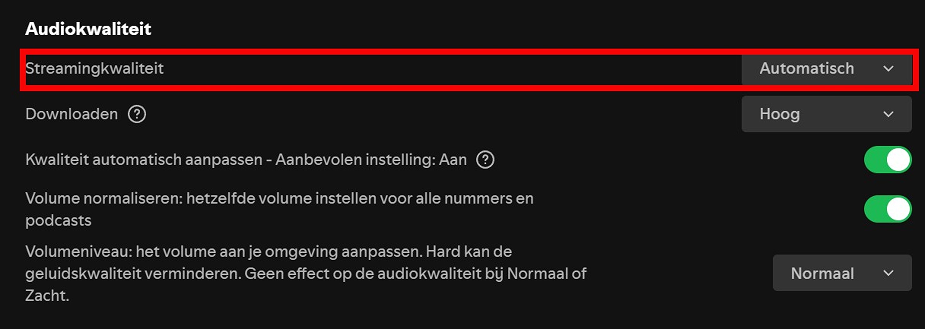 Spotify laat je als premiumgebruiker het basisvolume aanpassen op drie niveaus: stil, normaal of luid. âZachtâ zorgt voor een helder geluid zonder veel kracht, ideaal voor rustige plekken. âNormaalâ is precies wat je denkt: een gemiddelde stand, prima voor dagelijks gebruik. En dan is er nog âHardâ, handig voor wie zich in een drukke sportschool bevindt en wel een extra boost kan gebruiken. Door simpelweg een paar instellingen aan te passen, stem je de app helemaal af op waar jij bent.