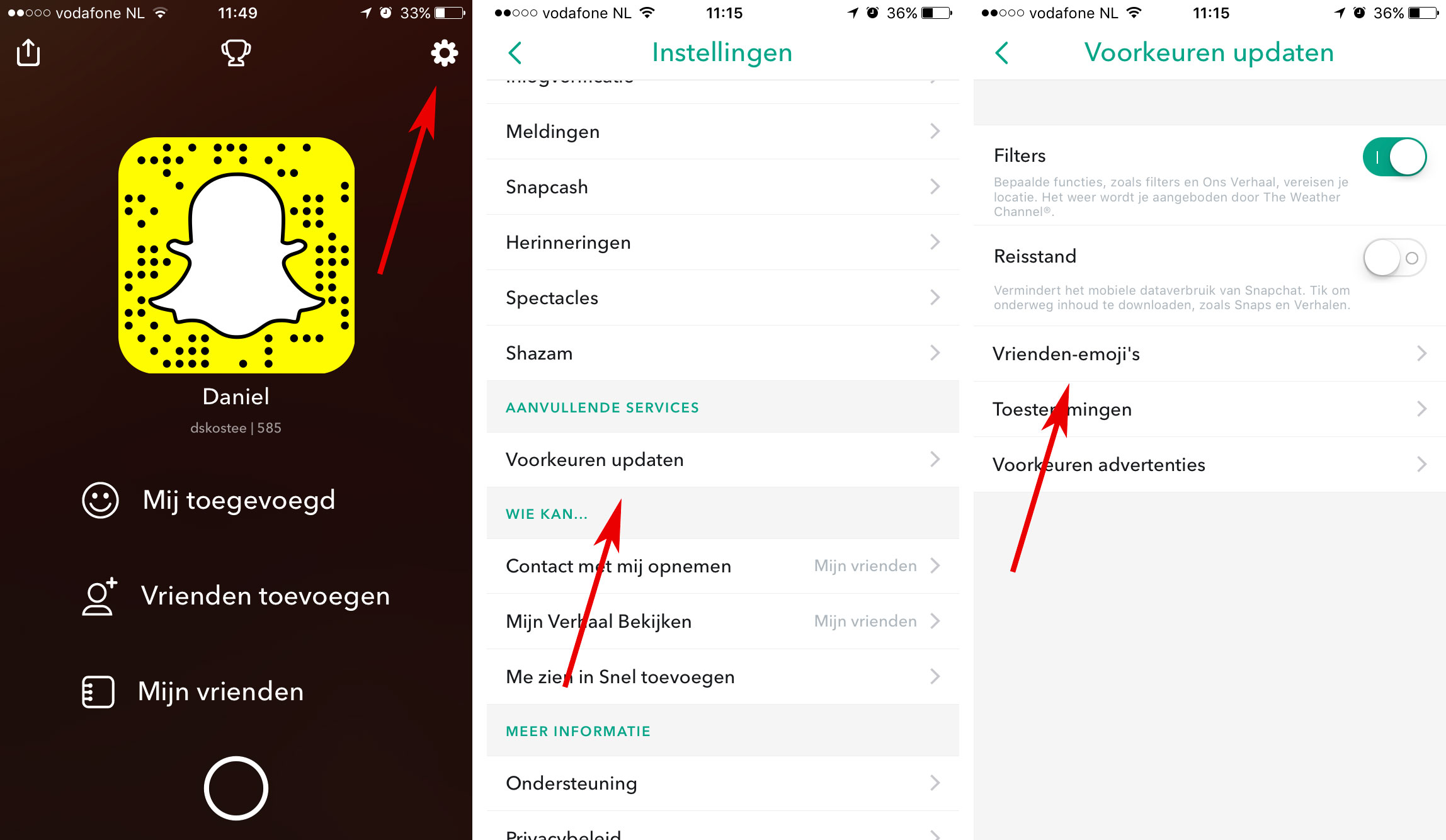 Om deze Snapchat emoji te vinden is simpel. Open de app en swipe van boven naar beneden. Open vervolgens je instellingen, scrol naar ‘Voorkeuren updaten’ en chick op ‘Vrienden-emoji’s’. That’s it!
