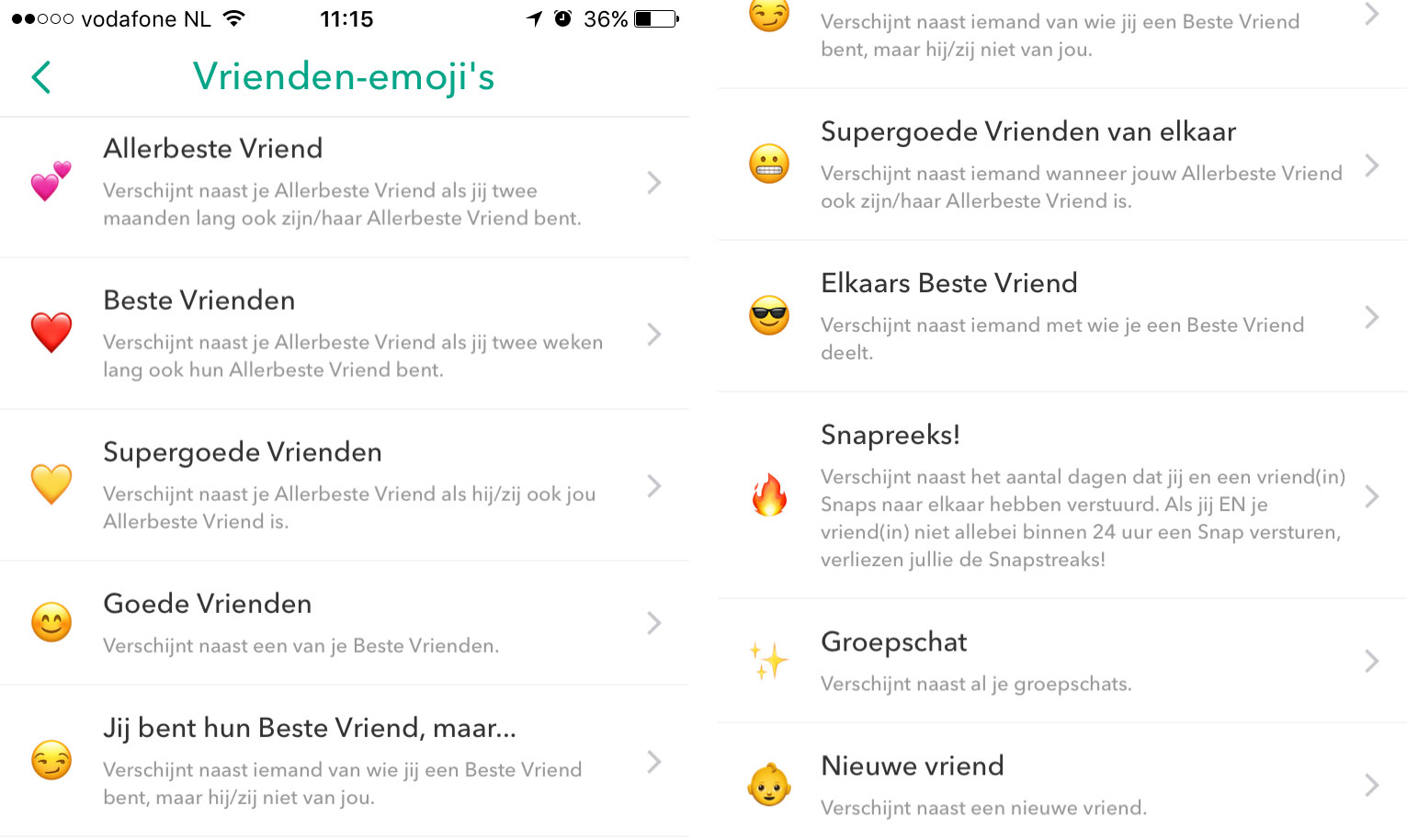 - Een geel hartje: deze verschijnt naast je allerbeste vriend als diegene dat ook van jou is.