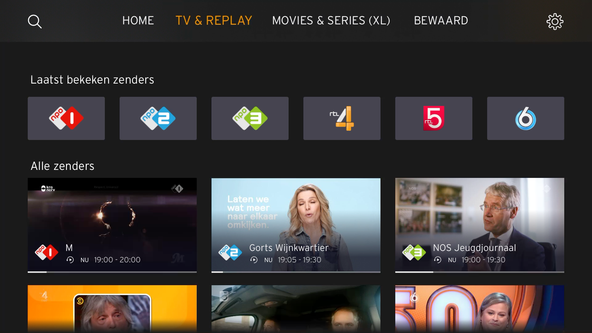 Wie de iPhone- of iPad-app van Ziggo al eens heeft gebruikt, zal meteen vertrouwd zijn met de interface van Ziggo Go voor Apple TV. De interface lijkt op die van de tabletversie, al zijn er wel speciale elementen voor de Apple TV toegevoegd. Een van die elementen is integratie met de ‘Top Shelf’ van tvOS. De app toont daar welke programma’s momenteel het meest worden bekeken.